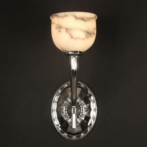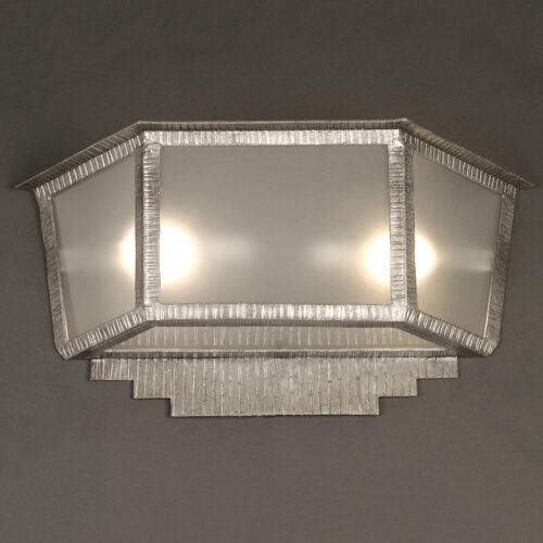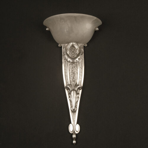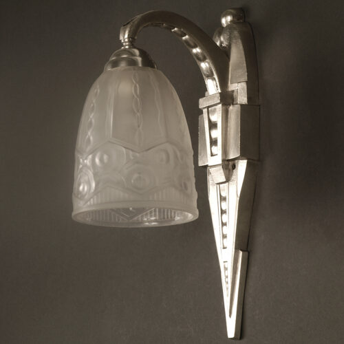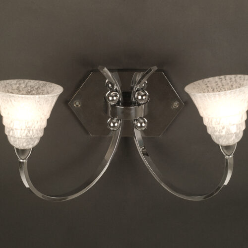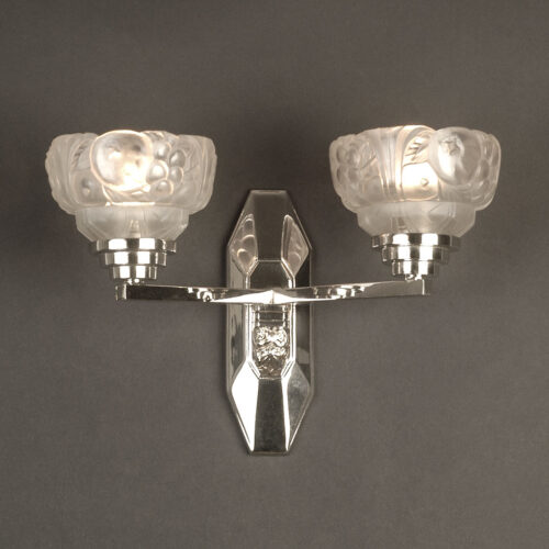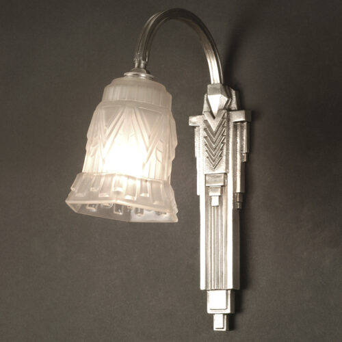 ALFRED GAGNON : APPLIQUE DOUBLE ART DÉCO BRONZE ARGENTÉ ET VERRE SATINÉ