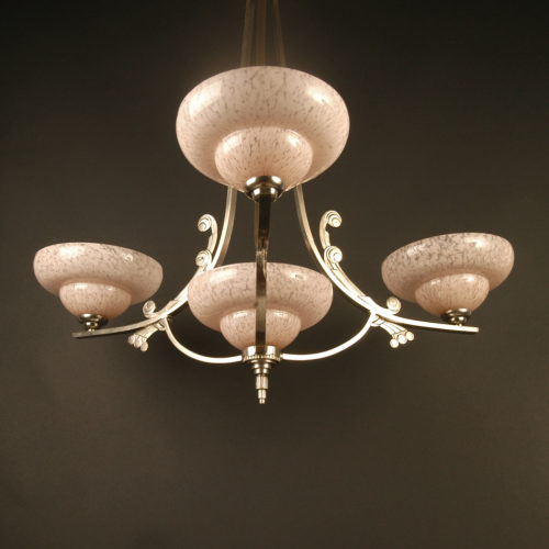 Ajouter au panier EMILE DOMAINE/MODEL-VERDUN, LUSTRE ART DÉCO BRONZE ARGENTÉ, VERRE MOULÉ-PRESSÉ 1 350,00€