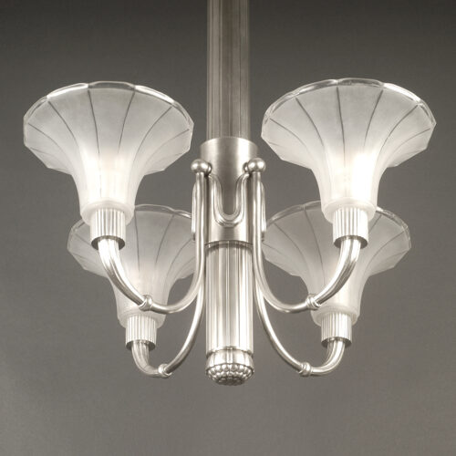 Ajouter au panier HUBERT PETITOT : LUSTRE ART DÉCO EN BRONZE ARGENTÉ ET VERRE MOULÉ-PRESSE DÉPOLI BLANC 1 180,00€